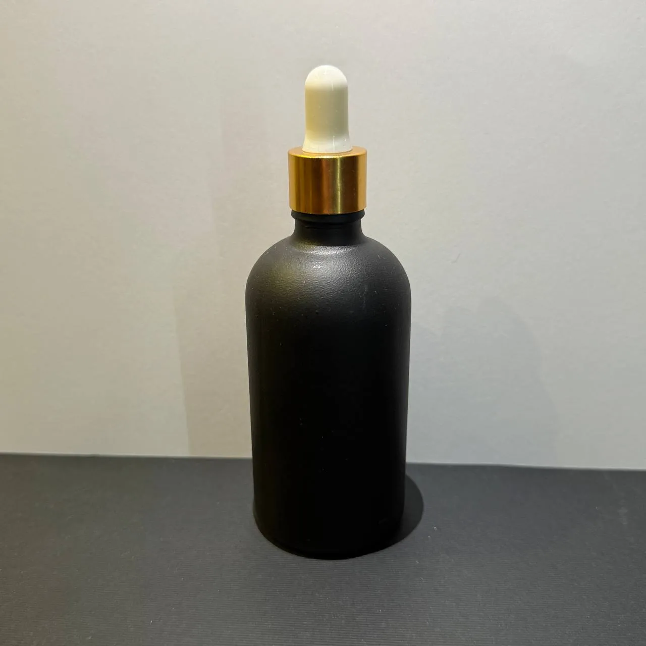 شيشه مشكي 100 میل همراه با قطره چکان سفید طلایی