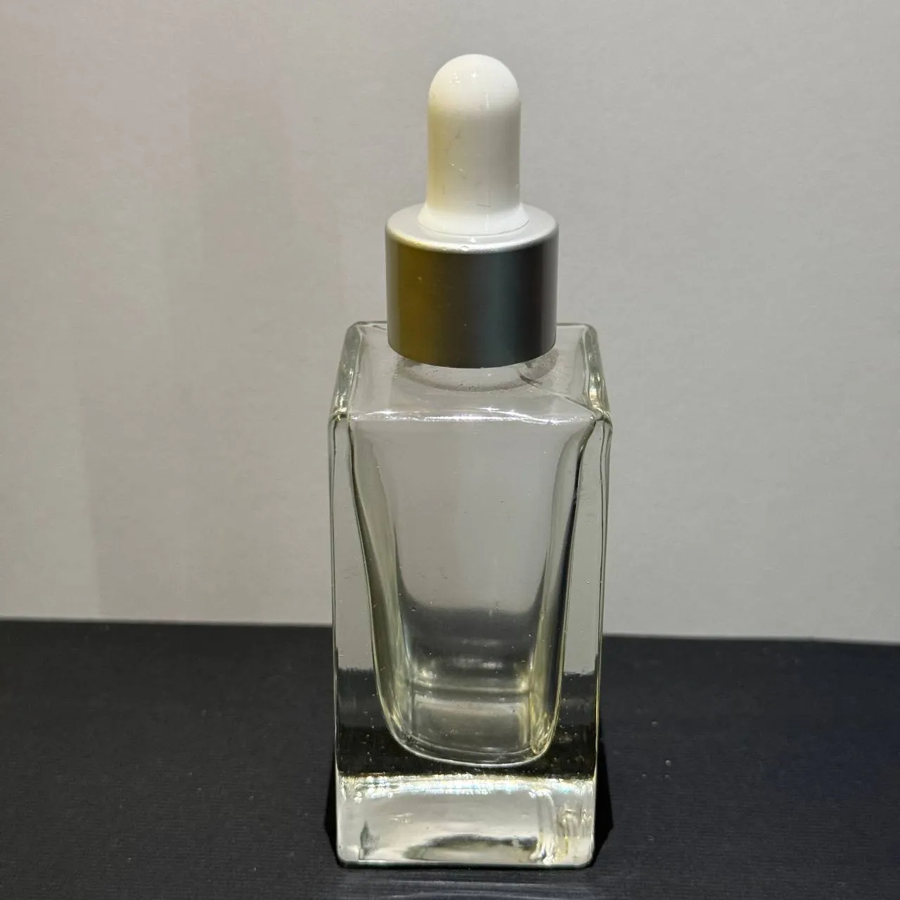 شيشه ٣٠ ميل همراه با قطره چكان سفید کروم ساختهشده از شیشه باکیفیت و مقاوم